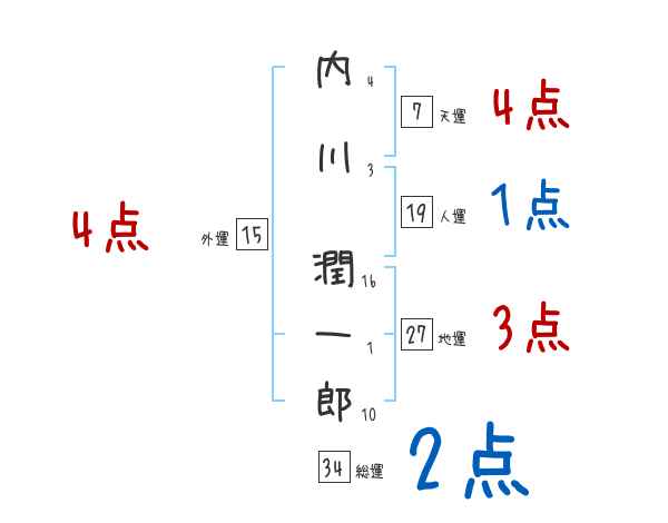 天運![]() | 内川潤一郎さんの天運は7画の4つ星!強い意志や信念を持ち独立心が強い。自立する。 家系が持つ宿命的な運勢を表します。祖先から受け継いだ苗字ですので自分の力が及びません。家柄を象徴します。 |