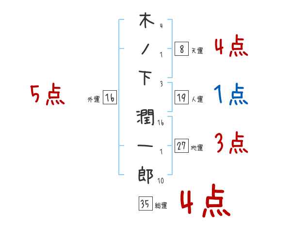 木ノ下潤一郎さんの画数の鑑定結果