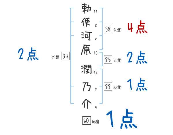 勅使河原潤乃介さんの画数の鑑定結果