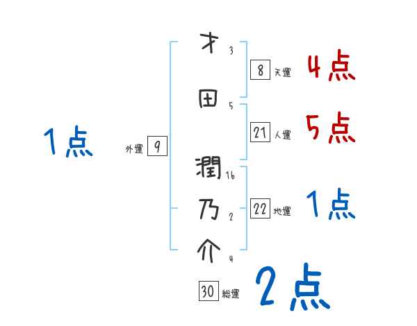 外運![]() | 才田潤乃介さんの外運は9画の1つ星!消極的で才能を発揮することが苦手なことも。周りの意見に耳を傾けましょう。 生活面を象徴する運勢です。外部から受ける影響力を表し、結婚運、家庭運や職場、環境への順応性を表します。 |