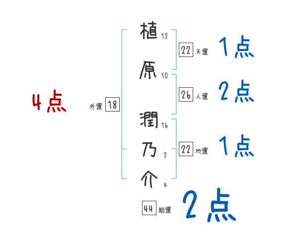 植原潤乃介さんの画数の鑑定結果