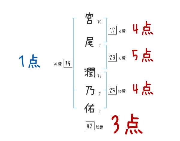 宮尾潤乃佑さんの画数の鑑定結果