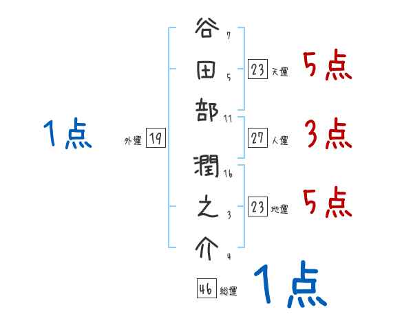 谷田部潤之介さんの画数の鑑定結果