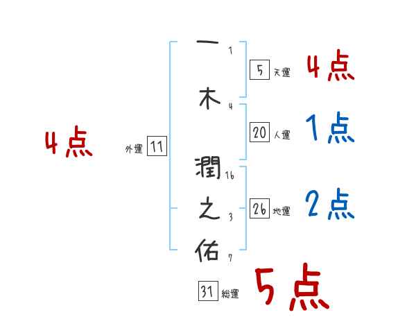 天運![]() | 一木潤之佑さんの天運は5画の4つ星!健康で安泰。協調性に優れ、財産に恵まれる。 家系が持つ宿命的な運勢を表します。祖先から受け継いだ苗字ですので自分の力が及びません。家柄を象徴します。 |