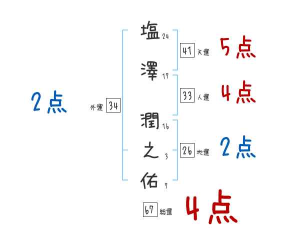 塩澤潤之佑さんの画数の鑑定結果