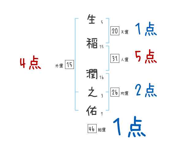 外運![]() | 生稲潤之佑さんの外運は15画の4つ星!人徳があり出世する。順調に物事を進め円満な人生。 生活面を象徴する運勢です。外部から受ける影響力を表し、結婚運、家庭運や職場、環境への順応性を表します。 |