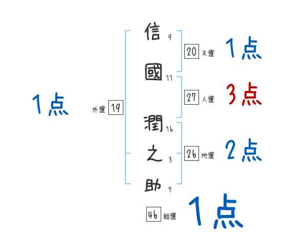 信國潤之助さんの画数の鑑定結果