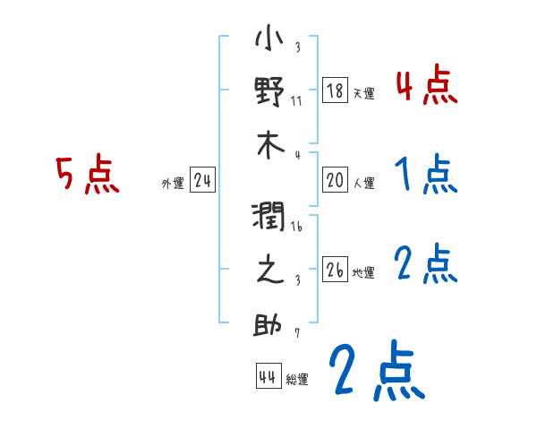 小野木潤之助さんの画数の鑑定結果