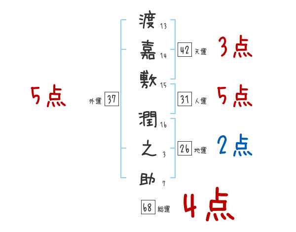 渡嘉敷潤之助さんの画数の鑑定結果