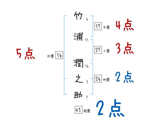 総運![]() | 竹浦潤之助さんの総運は43画の2つ星!頑固な性格で独立心が強いかも。やや非現実的で浪費に注意しましょう。 あなたの人生を表す1番重要な運勢です。生涯を通じて影響する総合運となり、主に50歳以降の晩年期に影響を及ぼします。 |