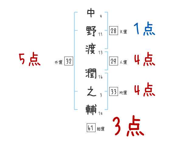中野渡潤之輔さんの画数の鑑定結果