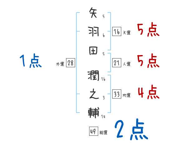 矢羽田潤之輔さんの画数の鑑定結果