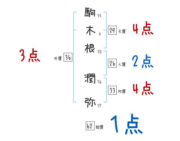 駒木根潤弥さんの画数の鑑定結果