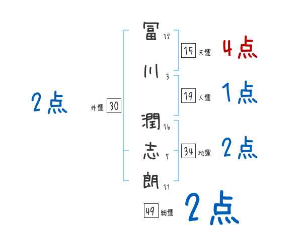冨川潤志朗さんの画数の鑑定結果