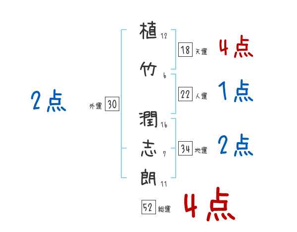 植竹潤志朗さんの画数の鑑定結果