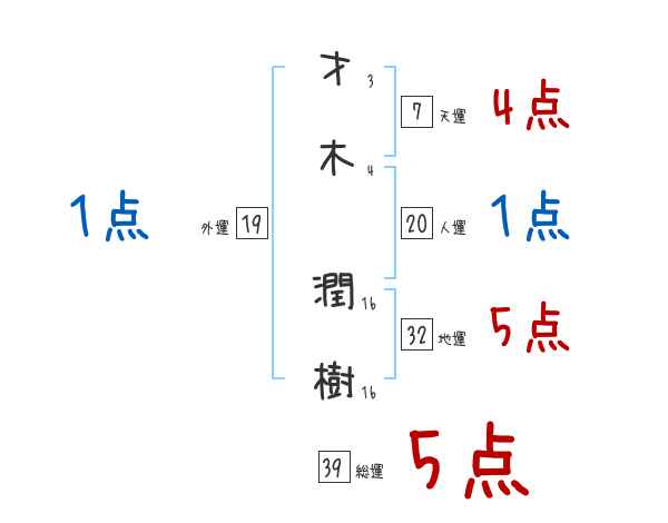 天運![]() | 才木潤樹さんの天運は7画の4つ星!強い意志や信念を持ち独立心が強い。自立する。 家系が持つ宿命的な運勢を表します。祖先から受け継いだ苗字ですので自分の力が及びません。家柄を象徴します。 |