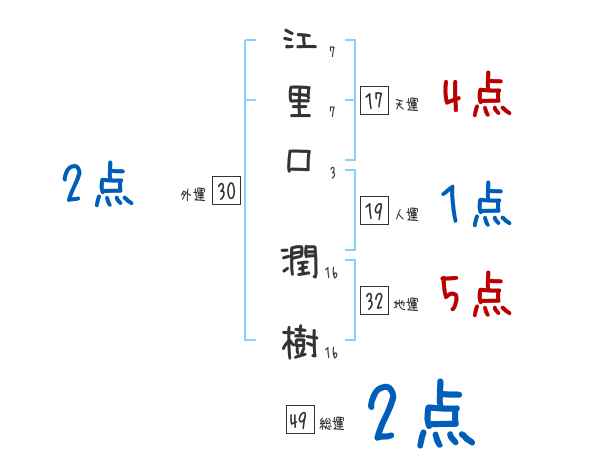 江里口潤樹さんの画数の鑑定結果