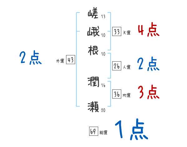 嵯峨根潤瀬さんの画数の鑑定結果