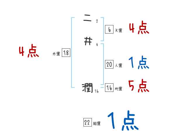 天運![]() | 二井潤さんの天運は6画の4つ星!慎重な努力家で信頼を得る。誠実な精神で向上心に優れる。 家系が持つ宿命的な運勢を表します。祖先から受け継いだ苗字ですので自分の力が及びません。家柄を象徴します。 |
