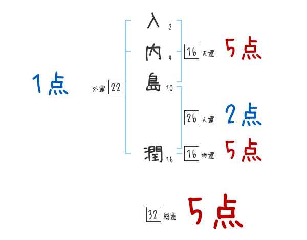 入内島潤さんの画数の鑑定結果