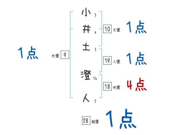 総運![]() | 小井土澄人さんの総運は28画の1つ星!家庭環境に注意。スポーツで活躍できる能力があるかも。 あなたの人生を表す1番重要な運勢です。生涯を通じて影響する総合運となり、主に50歳以降の晩年期に影響を及ぼします。 |