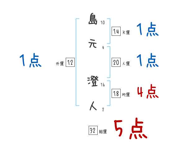 総運![]() | 島元澄人さんの総運は32画の5つ星!柔軟性があり成功する。チャンスが多く金運が良い。 あなたの人生を表す1番重要な運勢です。生涯を通じて影響する総合運となり、主に50歳以降の晩年期に影響を及ぼします。 |