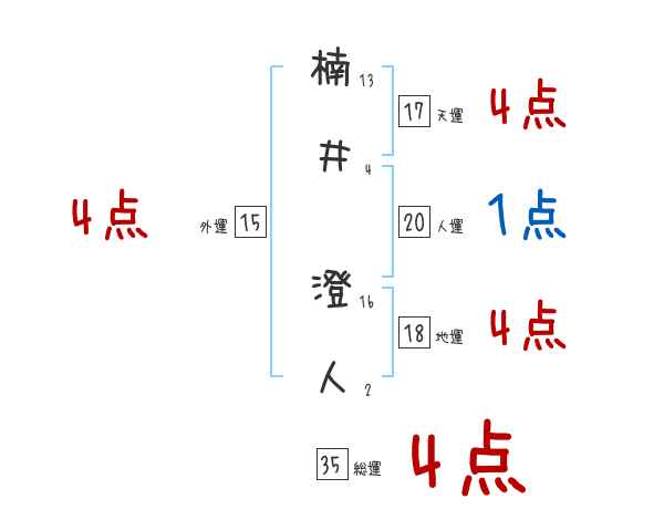 楠井澄人さんの画数の鑑定結果