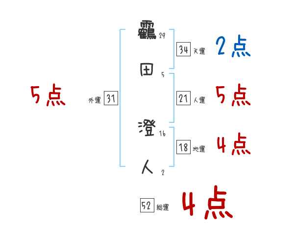 靏田澄人さんの画数の鑑定結果