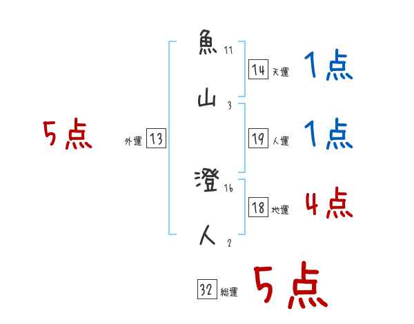 魚山澄人さんの画数の鑑定結果