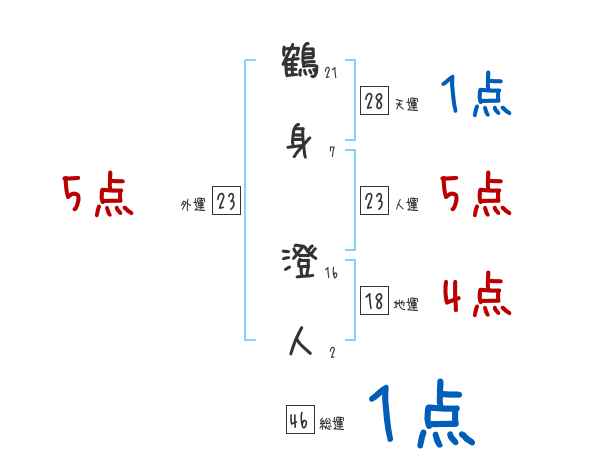 鶴身澄人さんの画数の鑑定結果