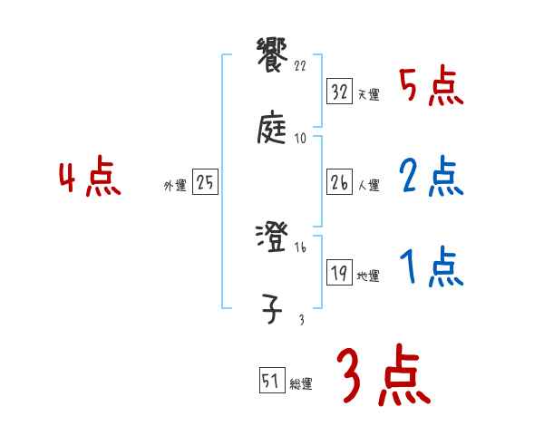 天運![]() | 饗庭澄子さんの天運は32画の5つ星!柔軟性があり成功する。チャンスが多く金運が良い。 家系が持つ宿命的な運勢を表します。祖先から受け継いだ苗字ですので自分の力が及びません。家柄を象徴します。 |