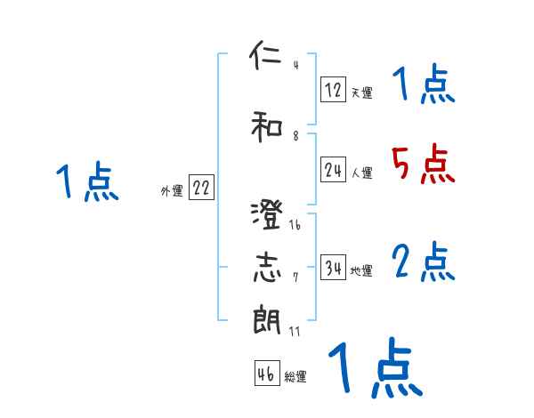 人運![]() | 仁和澄志朗さんの人運は24画の5つ星!家庭運が良く順調な人生。金運にも恵まれる。 性格や才能などを表す2番目に重要な運勢です。人間関係や協調性、社会的な成功に影響します。主に20歳から50歳ぐらいまでの中年期の運勢を表します。 |