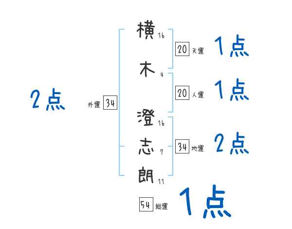 外運![]() | 横木澄志朗さんの外運は34画の2つ星!独創性に優れるが、自尊心が強く災難に注意しましょう。 生活面を象徴する運勢です。外部から受ける影響力を表し、結婚運、家庭運や職場、環境への順応性を表します。 |