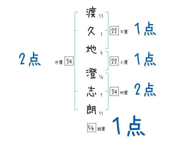 人運![]() | 渡久地澄志朗さんの人運は22画の1つ星!努力することが苦手ないっぽう手先が器用。芸術性にも優れる。 性格や才能などを表す2番目に重要な運勢です。人間関係や協調性、社会的な成功に影響します。主に20歳から50歳ぐらいまでの中年期の運勢を表します。 |
