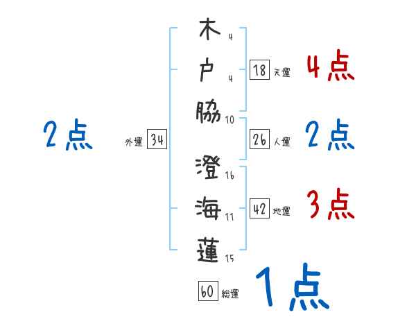 木戸脇澄海蓮さんの画数の鑑定結果