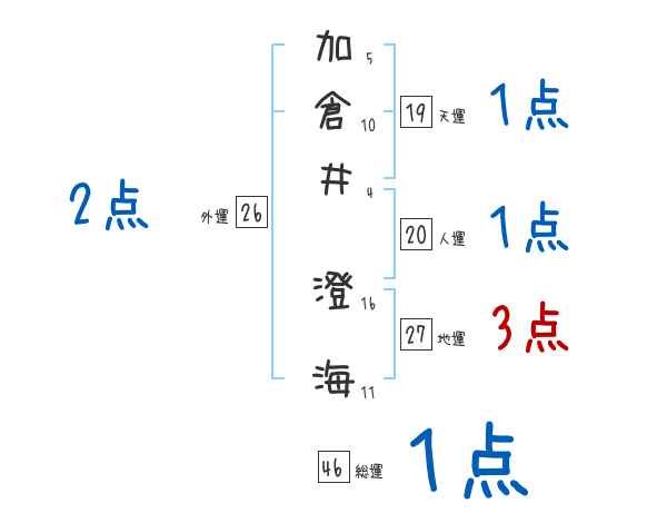 外運![]() | 加倉井澄海さんの外運は26画の2つ星!波瀾万丈かも。信頼できる人を大事にしましょう。 生活面を象徴する運勢です。外部から受ける影響力を表し、結婚運、家庭運や職場、環境への順応性を表します。 |