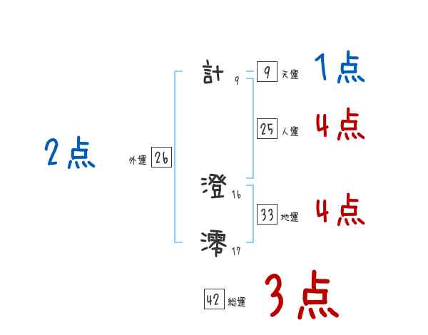 外運![]() | 計澄澪さんの外運は26画の2つ星!波瀾万丈かも。信頼できる人を大事にしましょう。 生活面を象徴する運勢です。外部から受ける影響力を表し、結婚運、家庭運や職場、環境への順応性を表します。 |