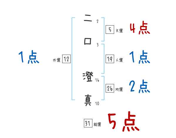 二口澄真さんの画数の鑑定結果