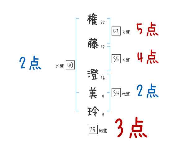 | 人運  | 権藤澄美玲さんの人運は35画の4つ星!温厚な性格で感受性が高い。穏和な性格で人望が厚い。性格や才能などを表す2番目に重要な運勢です。人間関係や協調性、社会的な成功に影響します。主に20歳から50歳ぐらいまでの中年期の運勢を表します。 |