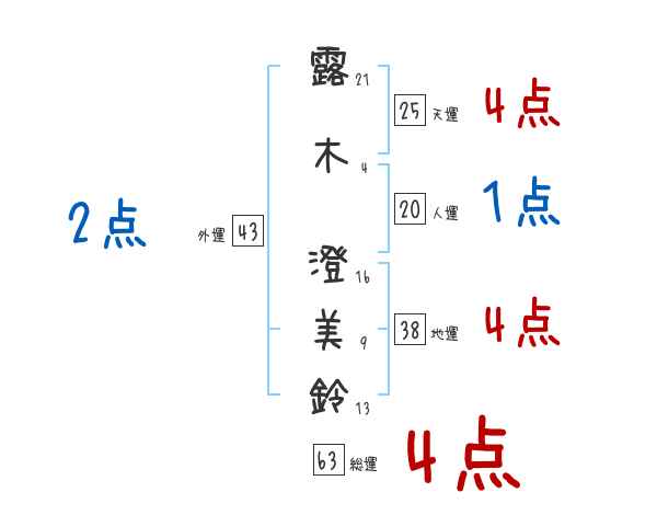天運![]() | 露木澄美鈴さんの天運は25画の4つ星!個性があり才能があふれる。強運の持ち主で発展する。 家系が持つ宿命的な運勢を表します。祖先から受け継いだ苗字ですので自分の力が及びません。家柄を象徴します。 |