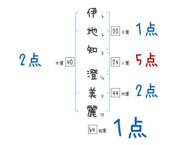 地運![]() | 伊地知澄美麗さんの地運は44画の2つ星!誠実で慎重な性格。物事を考えすぎないように注意しましょう。 個性を表す基礎的な運勢です。性格形成や対人関係、行動力など家庭環境に影響されます。主に誕生してから20歳くらいまでの若年期の運勢を表します。 |