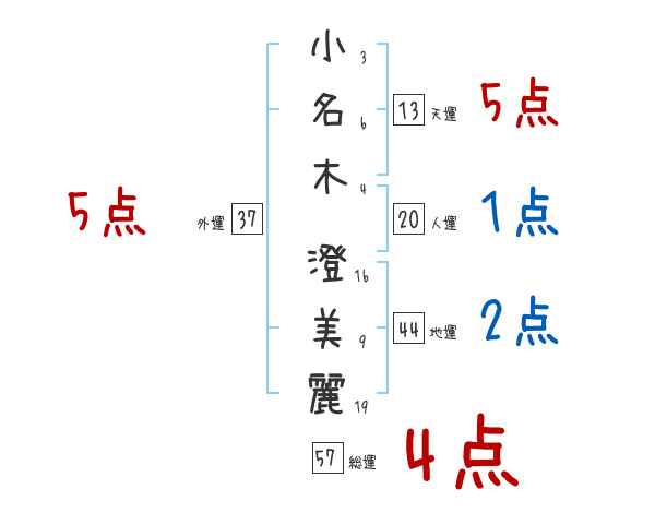 外運![]() | 小名木澄美麗さんの外運は37画の5つ星!努力家で順応性に優れる。現実的な考え方ができ忠実に物事をこなす。 生活面を象徴する運勢です。外部から受ける影響力を表し、結婚運、家庭運や職場、環境への順応性を表します。 |