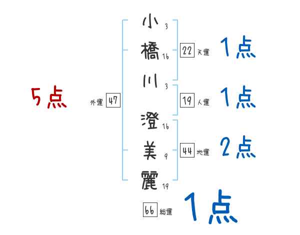小橋川澄美麗さんの画数の鑑定結果