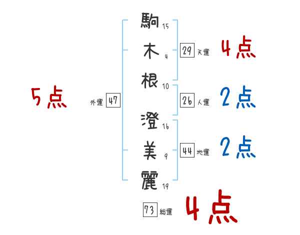 駒木根澄美麗さんの画数の鑑定結果