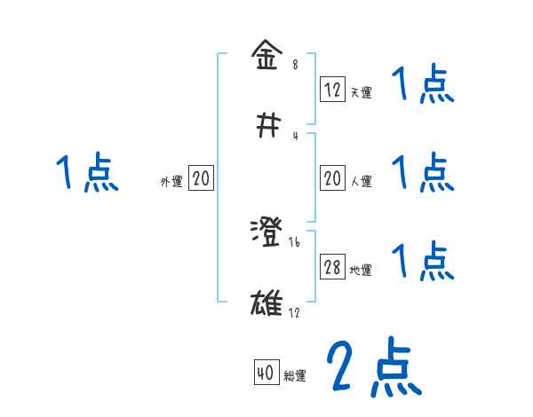 地運![]() | 金井澄雄さんの地運は28画の1つ星!家庭環境に注意。スポーツで活躍できる能力があるかも。 個性を表す基礎的な運勢です。性格形成や対人関係、行動力など家庭環境に影響されます。主に誕生してから20歳くらいまでの若年期の運勢を表します。 |