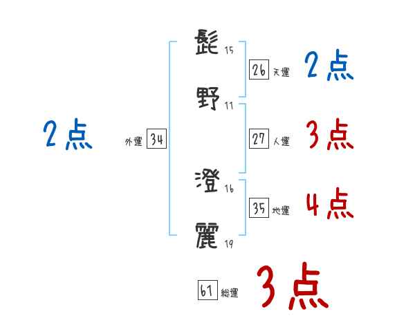 外運![]() | 髭野澄麗さんの外運は34画の2つ星!独創性に優れるが、自尊心が強く災難に注意しましょう。 生活面を象徴する運勢です。外部から受ける影響力を表し、結婚運、家庭運や職場、環境への順応性を表します。 |
