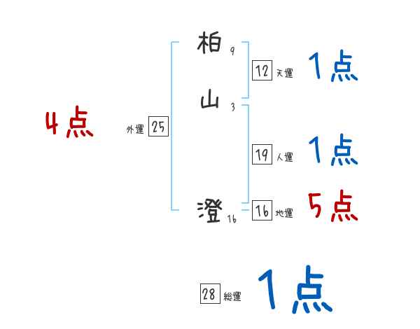 総運![]() | 柏山澄さんの総運は28画の1つ星!家庭環境に注意。スポーツで活躍できる能力があるかも。 あなたの人生を表す1番重要な運勢です。生涯を通じて影響する総合運となり、主に50歳以降の晩年期に影響を及ぼします。 |