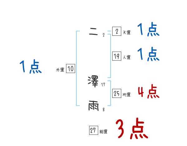 二澤雨さんの画数の鑑定結果