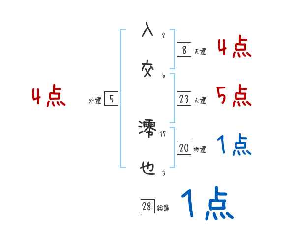 入交澪也さんの画数の鑑定結果