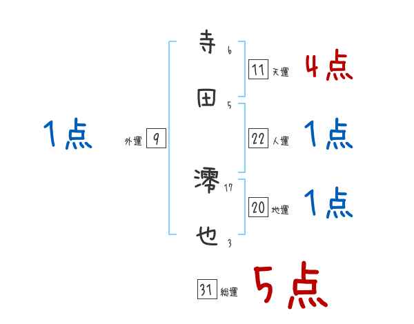 寺田澪也さんの画数の鑑定結果